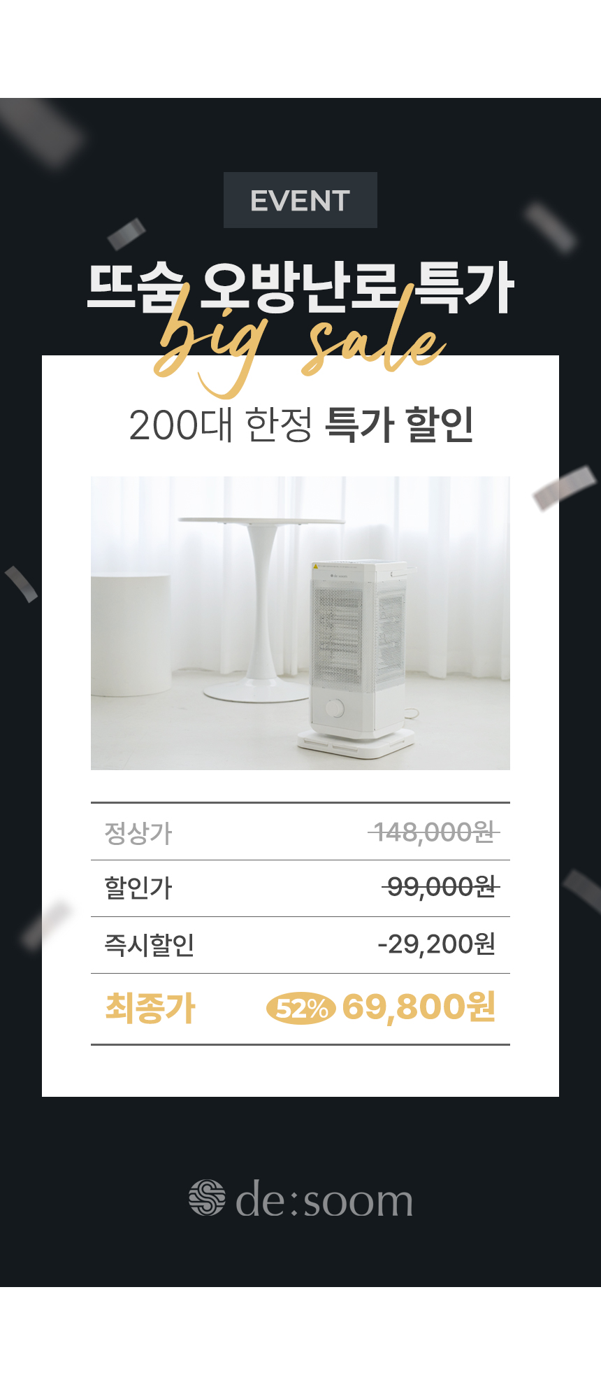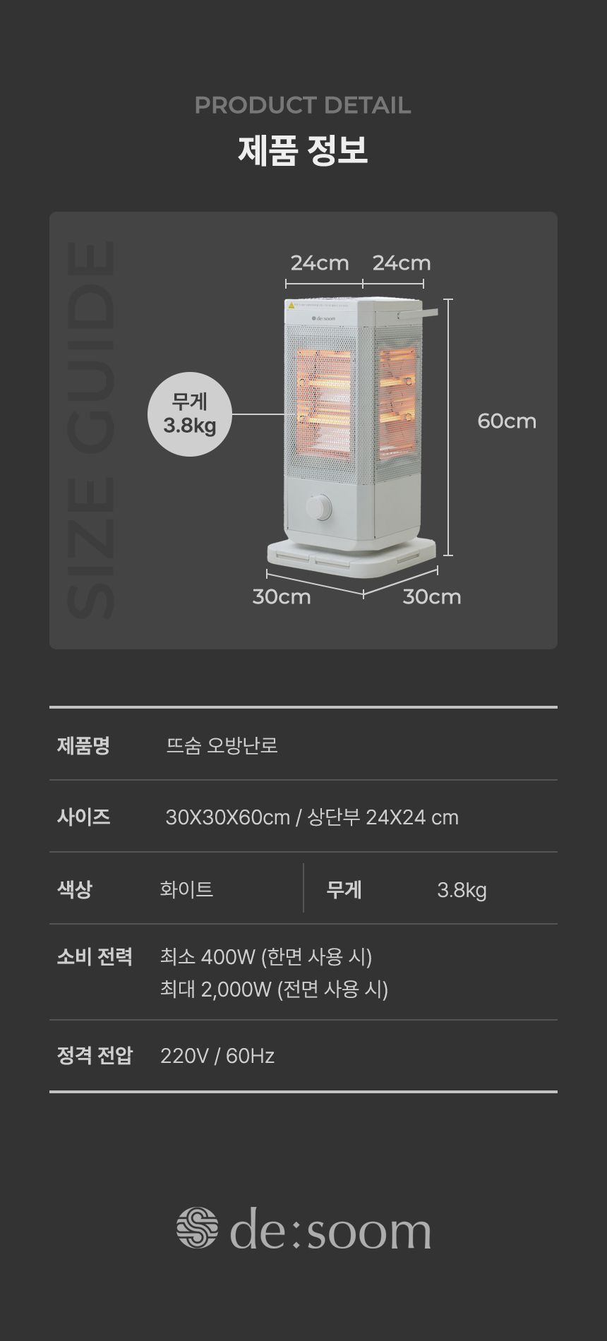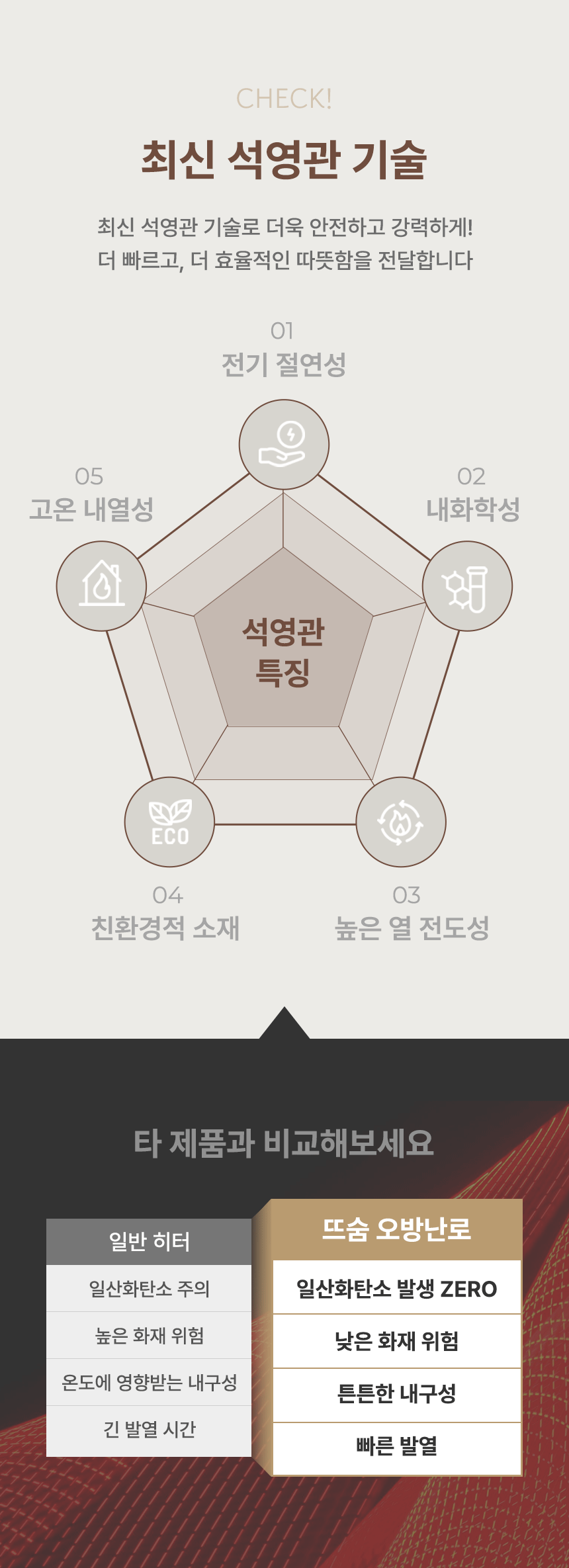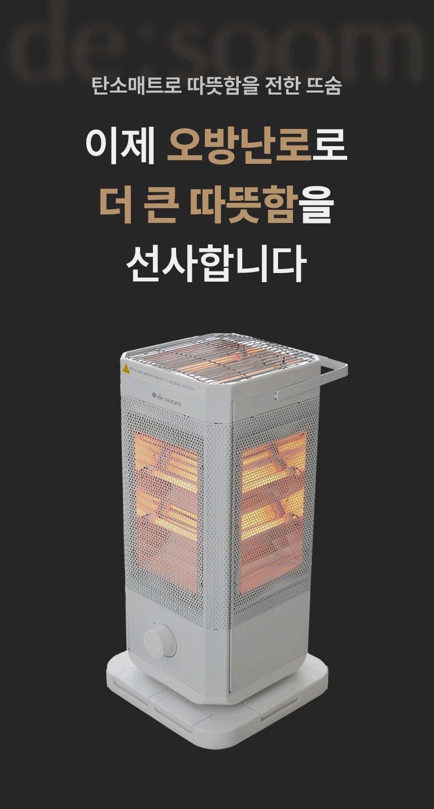 전체적으로 파스텔 우드톤을 메인으로 사용해 따뜻하고 아늑한 분위기를 연출했습니다. GIF 이미지를 활용하여 제품의 주요 기능을 눈에 띄게 전달하여 시각적 주목도를 높였습니다. 중간중간 사용된 세리프 서체는 고급스럽고 우아한 느낌을 더하고, 소비자들에게 품질과 세련된 이미지를 전달하는 데 중점을 두었습니다.